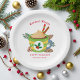 Pratos de Papel Caneca de Chocolate Quente de Natal com Caneca de Chocolate Quente Verde sobre um fundo branco, Nome da Família e texto Desejos Mais Quentes, Boas Festas. Confira nossa coleção abaixo para mais produtos com este design.
