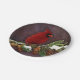 Uma imagem bonita de um cardeal masculino brilhante vermelho em uma neve espanou o ramo do pinho completo com os pinecones. Aperfeiçoe para sentimentos do Natal, ou todo o outro feriado de inverno!