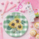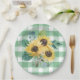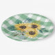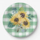 Pratos de Papel Casa de Campo Girassol Verde Xadrez. Este design adorável é perfeito para qualquer ocasião. Guardanapos combinando também estão disponíveis.