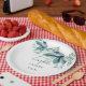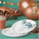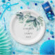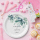 Esta placa de papel projetada para o casamento é mostrada com uma impressão de arte de eucalipto. Personalize este item e altere o texto do exemplo para o seu. Imagem licenciada