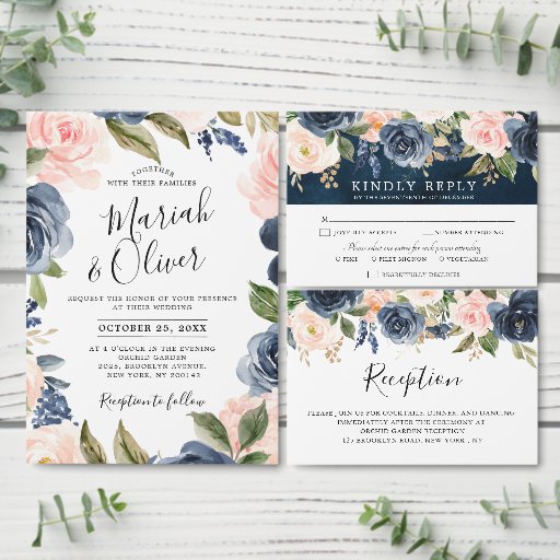 Navy Blue Blush Pink Roses Criado por Bliss Design Studio