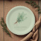 Placa de papel de casamento russa do país com rosmaninho de cor d'água amarrado com fio em verde de sábio. Perfeito para comemorações de outono, primavera, verão ou inverno, feriados, chás de panela e eventos elegantes de cottagecore. Um toque botânico na moda para a configuração da mesa.