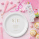 Prato De Papel Casamento com Monograma Dourado Moderno e Elegante