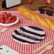 Prato De Papel Casamento com risca rosa e preta