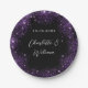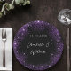 Prato De Papel Casamento com script de brilho roxo preto