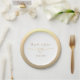 Celebre com elegância atemporal com este prato de papel para casamento branco e dourado, apresentando seus nomes, data do casamento e um coração de corda dourada romântico. O design minimalista com uma borda dourada de gradiente suave é perfeito para celebrações modernas, formais ou íntimas. Ideal para recepções de casamento, almoços de noiva, jantares de ensaio e festas de noivado.