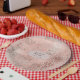 Pratos de papel de casamento decoupage scrapbook vintage rosa dourado projetados para serem personalizados rápida e facilmente de acordo com os detalhes do seu evento.