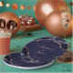 Esse design moderno apresenta tonalidades clássicas de agata azul marinho com veias metálicas de folha de ouro rosa. Adicione seu toque especial com seus nomes e data do casamento. Sinta-se à vontade para me contactar se precisar de ajuda ou de um design personalizado.