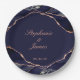 Prato De Papel Casamento de Agata de Folha de Rosa Azul Elegante