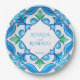 Prato De Papel Casamento de azulejos de Aqua Blue Talavera monogr