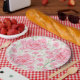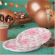 Cravos rosa em aquarela com caules verdes longos e bonitos foram usados para criar um lindo fundo para este prato de papel de recepção de casamento, chá de noiva ou chá de bebê. Três cravos rosa grandes em aquarela adicionam beleza que adorna este lindo design criando a louça perfeita para o seu evento. 100% de satisfação do cliente na Zazzle todos os dias.