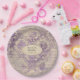 Papel de pratos de casamento lilás roxo decoupage de álbum de recortes vintage projetado para ser personalizado rápida e facilmente de acordo com as especificidades do seu evento.