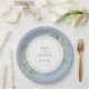 Com folhas delicadas em aquarela sobre um fundo azul empoeirado, este prato de papel botânico elegante pode ser personalizado com os detalhes do seu dia de casamento. Criado por Thisisnotme©