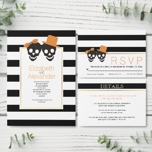 Black, white stripes and skulls Halloween weddingCriado por Modern Designs