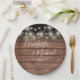 Prato De Papel Casamento de madeira rústica com assinatura em scr