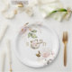 Prato De Papel Casamento de Monograma de Flores Douradas e Rosada