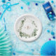 Prato De Papel Casamento de Monograma Geométrico Dourado com Folh