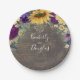 Prato De Papel Casamento de outono rústico roxo e girassol