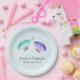 Chapas de papel com uma delicada design romântica. 2 borboletas elegantes de aquarelas, pintadas de púrpura pastel e verde. Um fundo de aquarela azul claro com pistas de rosa claro.