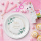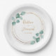 Prato De Papel Casamento de Script Dourado Moderno Eucalyptus Wat