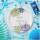 Placas de papel de casamento com tipografia elegante, com suculência de aquarelas.