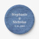 Prato De Papel Casamento de Tema de Denim Branco Azul