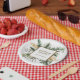 Prato De Papel Casamento Dourado de Quadros de Palmas Verdes Eleg