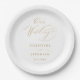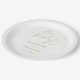 Prato De Papel Casamento Dourado de Script Moderno Branco Simples