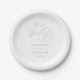 Prato De Papel Casamento Dourado de Script Moderno com Rosa Branc