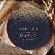 Dourado Confetti Marinho Blue Modern Plate de Papel de Casamento. Linda e simples confete de ouro de vidro vintage contra um fundo azul marinho. Este design moderno personalizado pode ser facilmente personalizado com seus próprios detalhes.