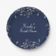 Prato De Papel Casamento Elegante Botânico Moderno Azul e Silver