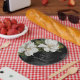 Uma placa de papel Elegante de Casamento desenhada com uma ilustração da Magnólia Branca sobre fundo preto. Correspondência de itens em nossa loja Design do Partido Cava