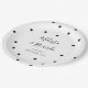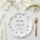 Simples bolinhas são espalhadas em torno dos detalhes do seu casamento personalizado nesta elegante prato de papel. Projetado por Thisisnotme©
