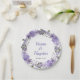 Uma elegante placa de papel de casamento com design floral roxo macio, oferecendo um toque doce e romântico.