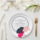 Adicione um toque de elegância sem gastar muito com pratos de papel personalizados para o seu casamento. Faça uma declaração com cores ousadas e um gráfico limpo e simples. Apresenta ilustrações de folhas de ginkgo em azul marinho, rosa claro e magenta vibrante.