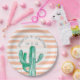 Prato De Papel Casamento Peach Watercolor Stripes Cactus Sudoeste