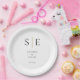 Prato De Papel Casamento Preto e Dourado com Monograma Elegante