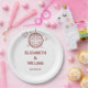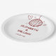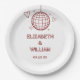 Esses pratos de papel de casamento retro vermelho disco groovy podem ser personalizados com suas informações em tipografia moderna. Projetado por Thisisnotme©