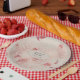 Pratos de papel de casamento em damasco rosa dourado vintage para scrapbook, projetados para serem personalizados rápida e facilmente de acordo com as especificidades do seu evento.