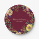 Celebre seu dia especial com esta rústica placa de papel do casamento apresentando um rico fundo burgundy, girassóis de aquarela, flores silvestres e folhagem de eucalipto em tons quentes de outono. Personalizado com os nomes do casal e a data do casamento, este design floral é ideal para casamentos outono, recepções de celeiro ou encontros de boho ao ar livre. Na moda e descartáveis, essas placas são perfeitas para sua mesa de sobremesa, brunch ou janto de ensaio.