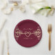 Adicione um toque de elegância rústica à sua celebração de casamento com os nossos pratos de papelão floral de burgundy chic. Personalizada com os nomes da noiva e do noivo, junto com a data memorável, cada placa apresenta um coração de corda de ouro cintilante interligado com um rendas floral dourado, criando uma mesa encantadora para seu dia especial. Deixe cada detalhe refletir a beleza da sua história de amor.