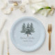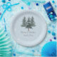 Moderno Winter Pine Trees Wedding Paper Plates para seu evento de casamento, recepção, janto de ensaio ou chá de panela com o tema do Casamento no inverno.