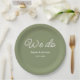 Sage Green Wedding Paper Plates com texto branco. Verifique a coleção de armazenamento abaixo para obter itens correspondentes.