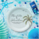 Prato De Papel Casamento Simples na Praia com Palmeira e Pássaros
