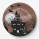 Um grande castelo negro e árvores nuas contra um céu noturno assustador, estas placas de papel do Feliz Halloween são divertidas para uma festa de fantasia de Halloween, festa de aniversário de Halloween ou qualquer ocasião. CORRESPONDENTE a itens na nossa coleção.