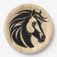 Amantes de cavalos apreciarão estas lindas placas com uma silhueta de cavalo sobre um fundo de madeira simulado.