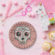 Prato De Papel Caveira de Açúcar Rosa e Dourado Festa Alegre e Fo