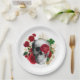 Prato De Papel Caveira do gótico com Flores Vermelhas e Folhas Do