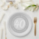 Folha comemorativa do aniversário com o nome da pessoa e a data do seu aniversário. Um prato de papel para alguém com 40 anos.