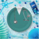 Placas de festas de formatura de enfermagem com temas médicos exclusivos, com escovas hospitalares e ilustração estetoscópica, para acrescentar algo especial à celebração de enfermeiros.